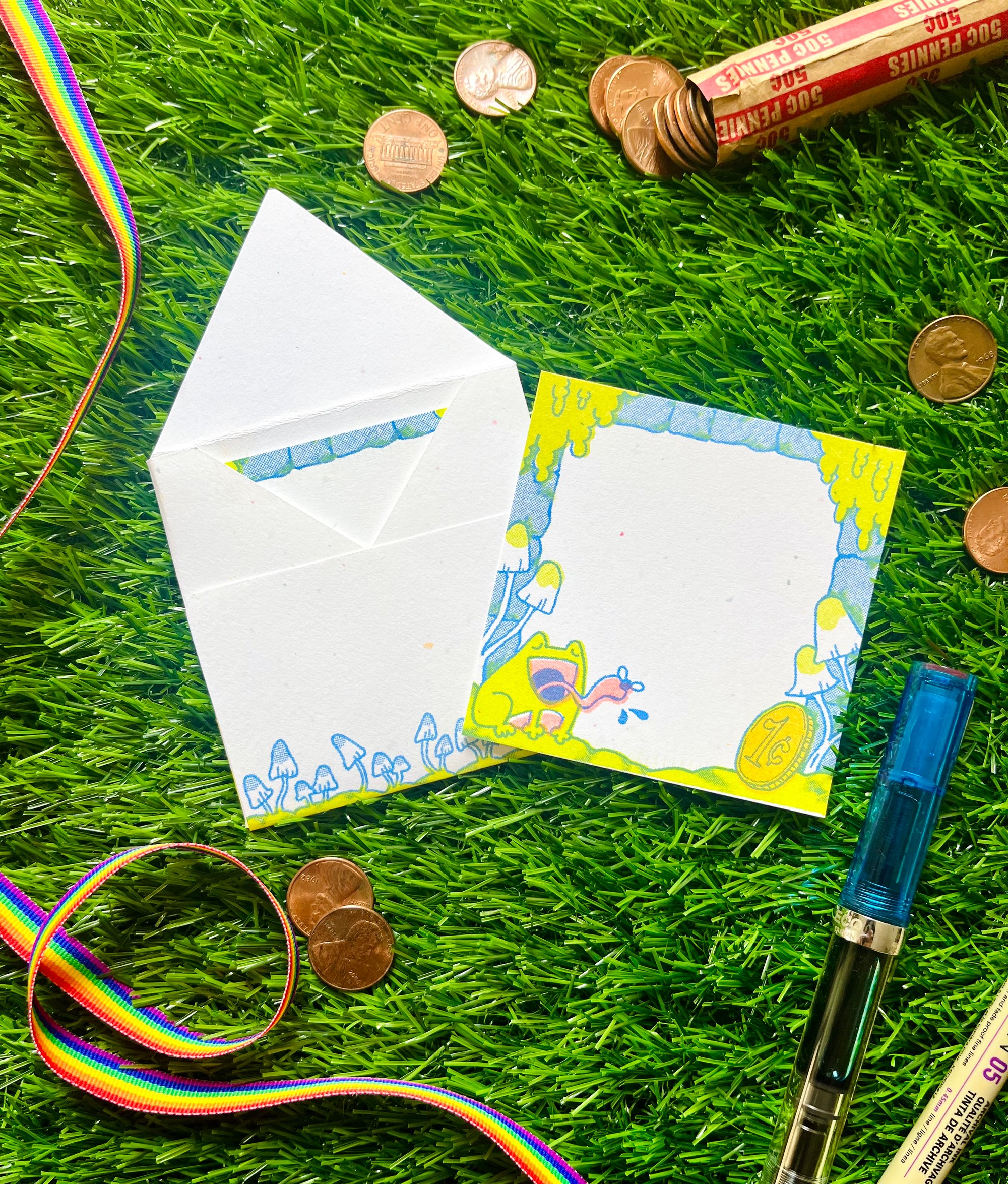 3.5 x 3.5 in, 4 envelopes and 8 notecards